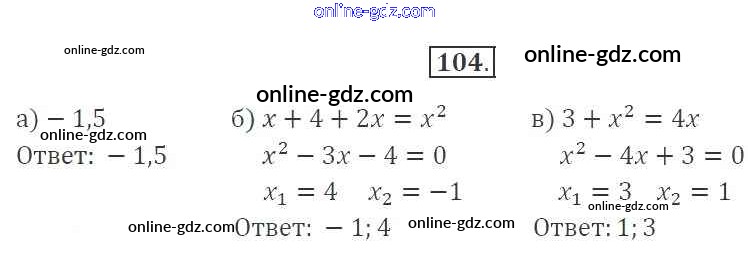 Готовые домашние задания по Алгебре за 9 класс Рабочая тетрадь Минаева, Рослова 2017 - Упражнения 104