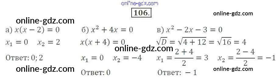 Готовые домашние задания по Алгебре за 9 класс Рабочая тетрадь Минаева, Рослова 2017 - Упражнения 106