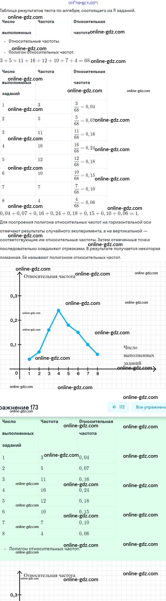 Готовые домашние задания по Алгебре за 9 класс Рабочая тетрадь Минаева, Рослова 2017 - Упражнения 173
