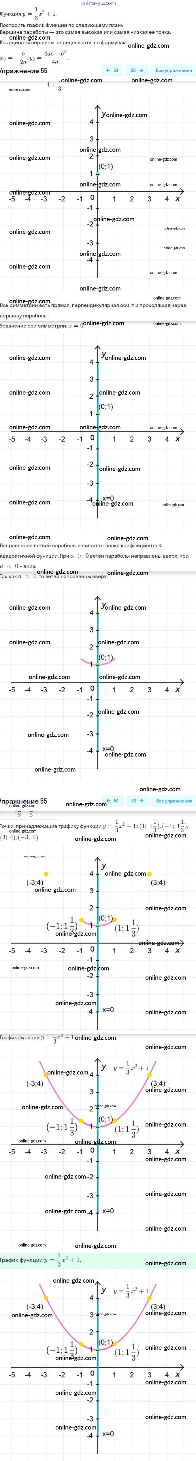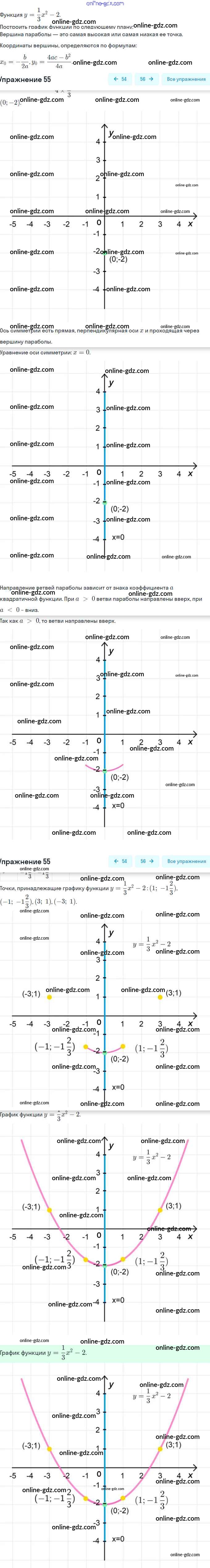 Готовые домашние задания по Алгебре за 9 класс Рабочая тетрадь Минаева, Рослова 2017 - Упражнения 55