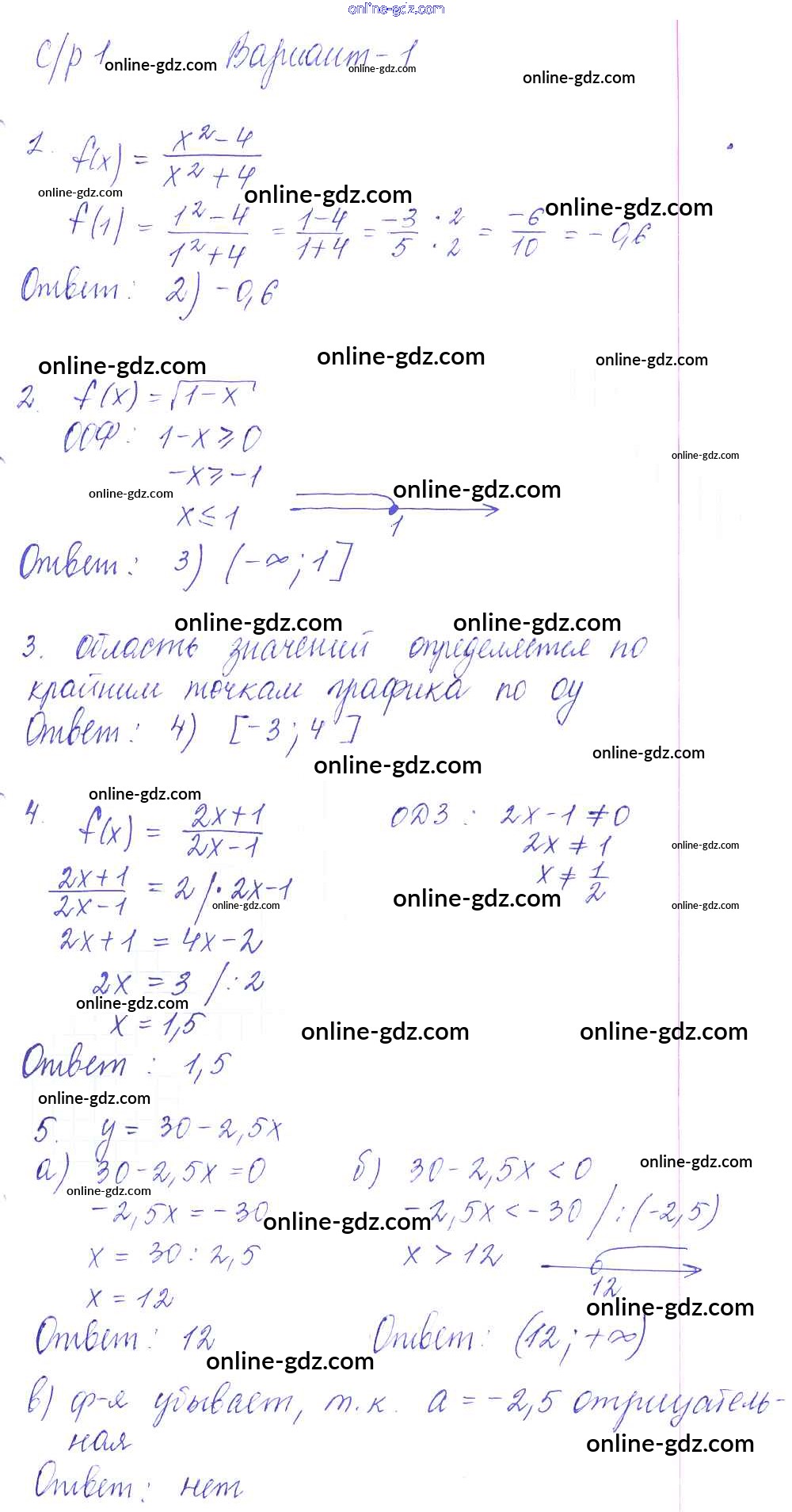 Готовые домашние задания по Алгебре за 9 класс Самостоятельные и контрольные работы Глазков, Варшавский УМК 2013 - СР-1. Функции и их свойства Самостоятельные работы вариант 1