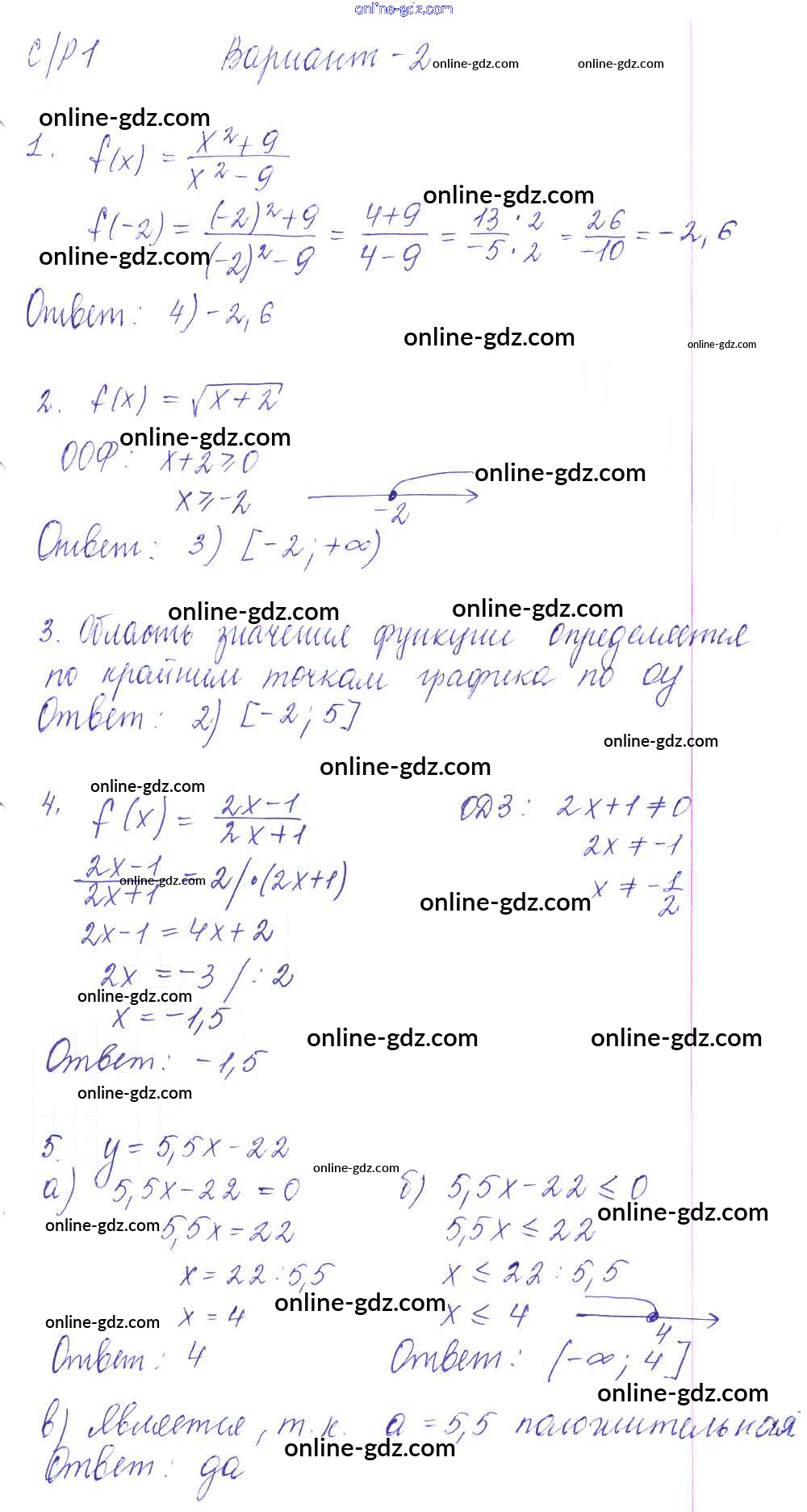 Готовые домашние задания по Алгебре за 9 класс Самостоятельные и контрольные работы Глазков, Варшавский УМК 2013 - СР-1. Функции и их свойства Самостоятельные работы вариант 2