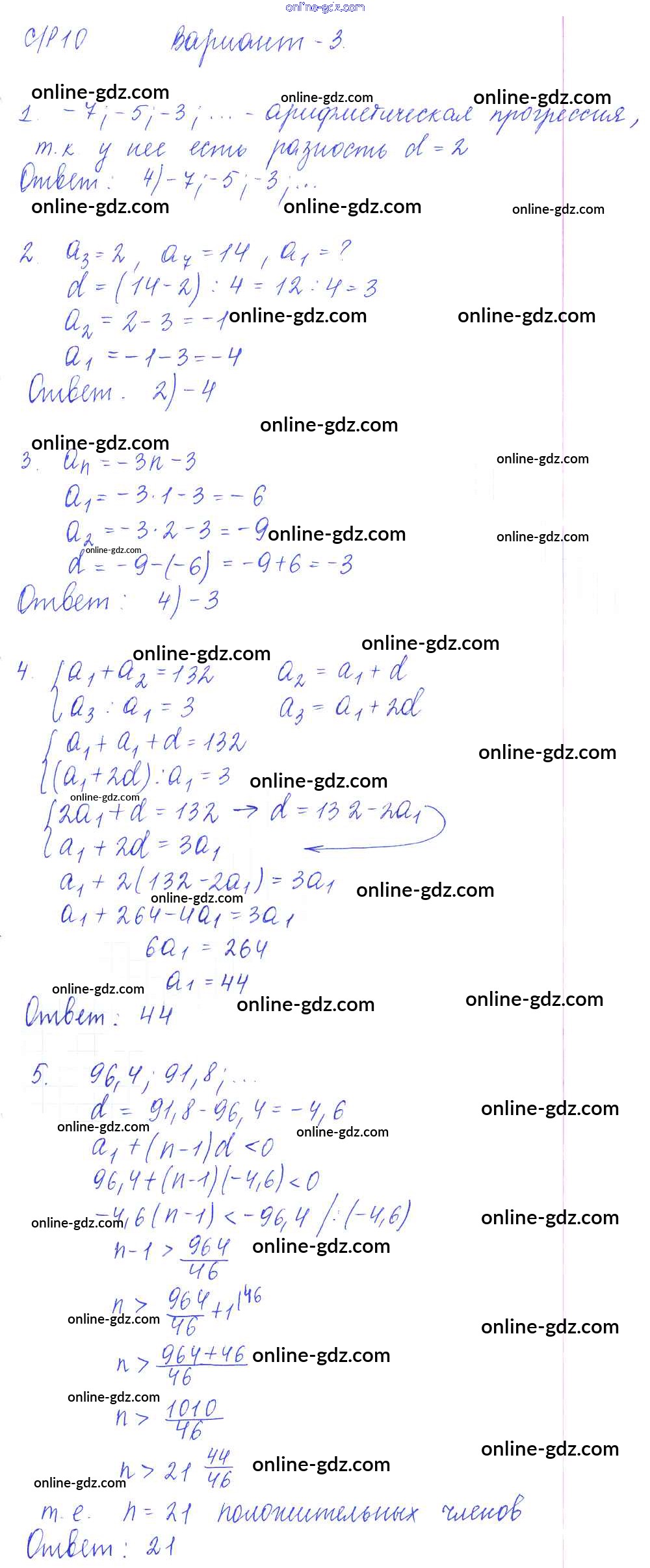 Готовые домашние задания по Алгебре за 9 класс Самостоятельные и контрольные работы Глазков, Варшавский УМК 2013 - СР-10. Арифметическая прогрессия Самостоятельные работы вариант 3