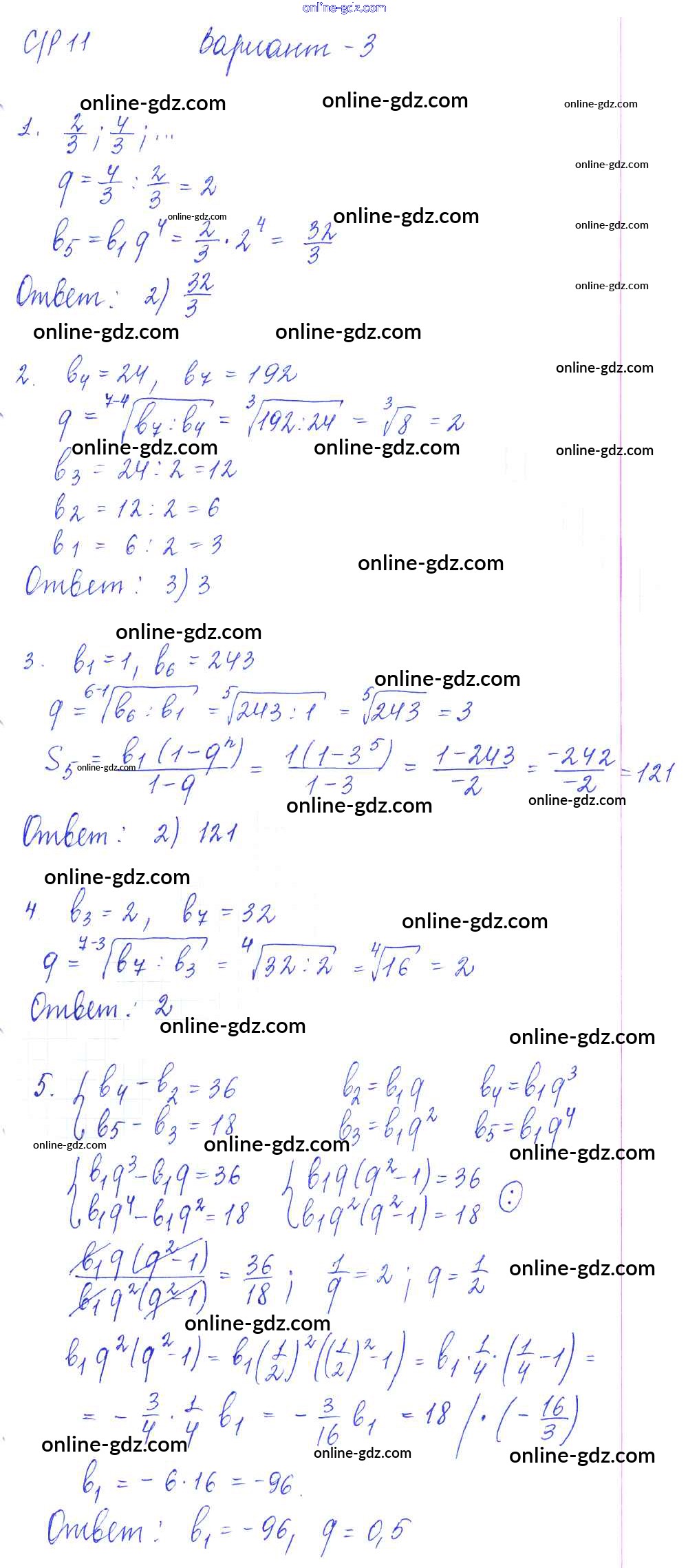 Готовые домашние задания по Алгебре за 9 класс Самостоятельные и контрольные работы Глазков, Варшавский УМК 2013 - СР-11. Геометрическая прогрессия Самостоятельные работы вариант 3