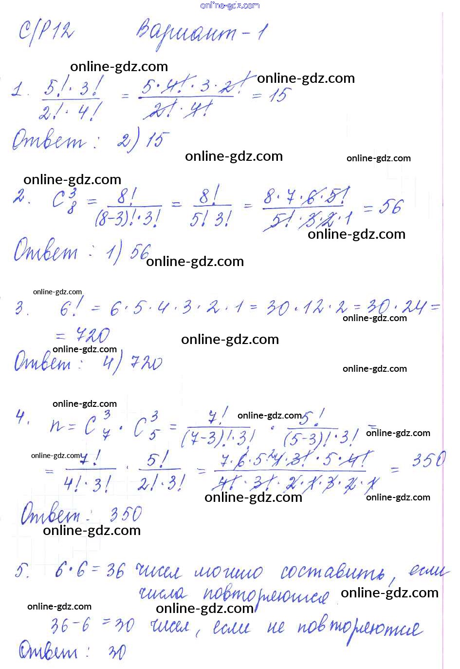 Готовые домашние задания по Алгебре за 9 класс Самостоятельные и контрольные работы Глазков, Варшавский УМК 2013 - СР-12. Элементы комбинаторики Самостоятельные работы вариант 1