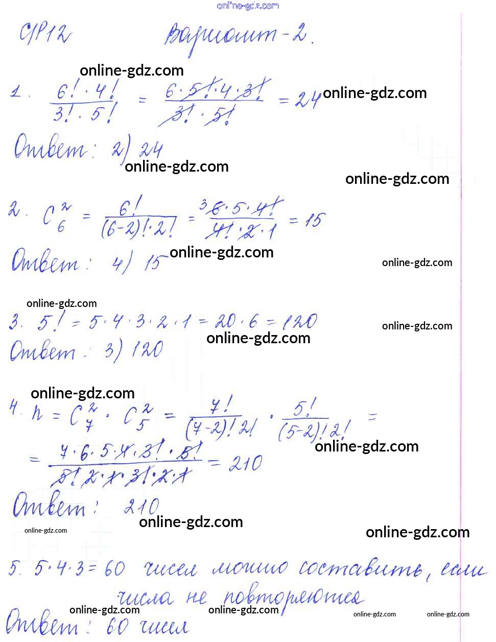 Готовые домашние задания по Алгебре за 9 класс Самостоятельные и контрольные работы Глазков, Варшавский УМК 2013 - СР-12. Элементы комбинаторики Самостоятельные работы вариант 2