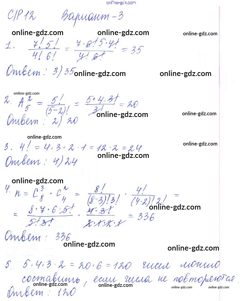 Готовые домашние задания по Алгебре за 9 класс Самостоятельные и контрольные работы Глазков, Варшавский УМК 2013 - СР-12. Элементы комбинаторики Самостоятельные работы вариант 3