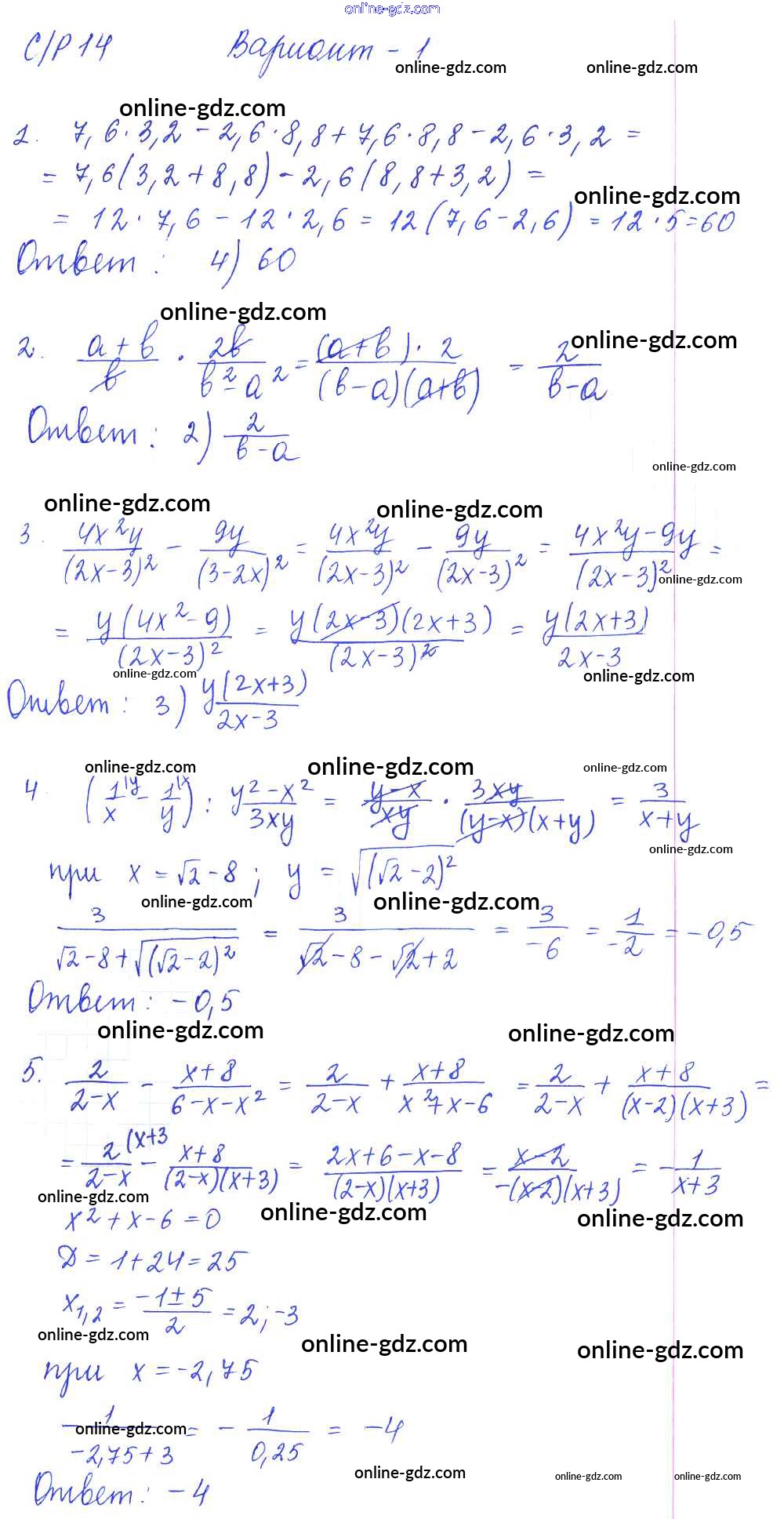 Готовые домашние задания по Алгебре за 9 класс Самостоятельные и контрольные работы Глазков, Варшавский УМК 2013 - СР-14. Итоговое повторение. Преобразование целых и дробных выражений Самостоятельные работы вариант 1