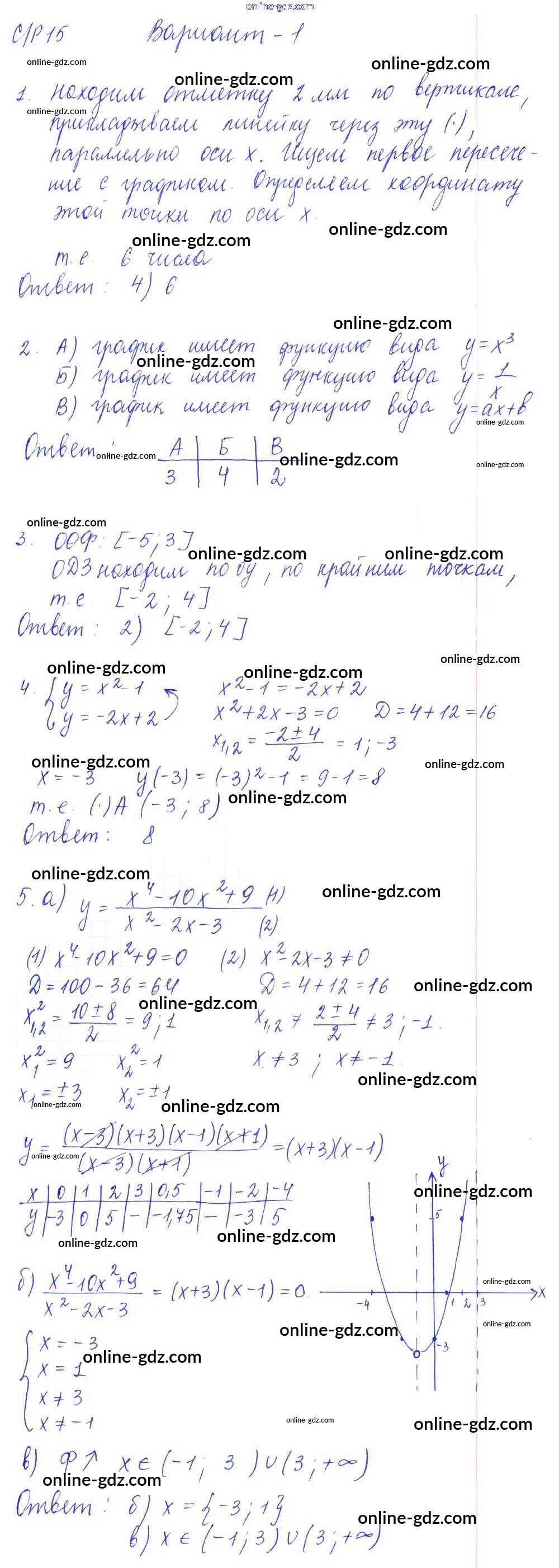 Готовые домашние задания по Алгебре за 9 класс Самостоятельные и контрольные работы Глазков, Варшавский УМК 2013 - СР-15. Итоговое повторение. Функции и графики. Графическое решение уравнений и их систем Самостоятельные работы вариант 1