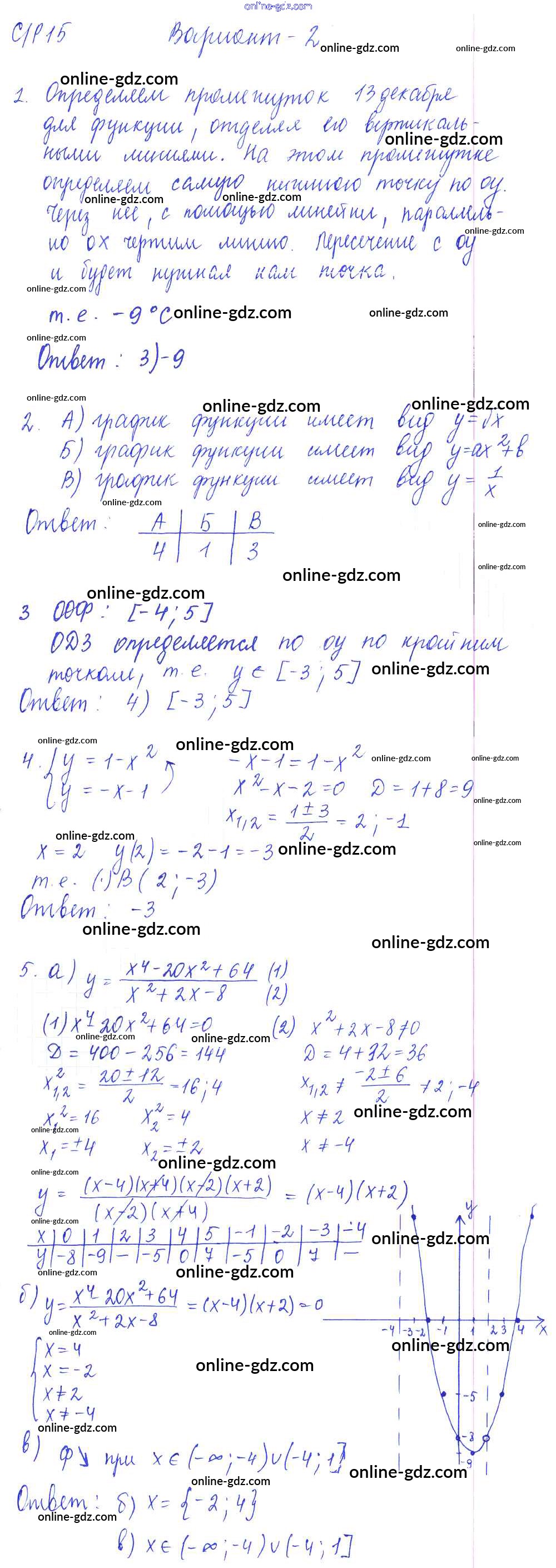 Готовые домашние задания по Алгебре за 9 класс Самостоятельные и контрольные работы Глазков, Варшавский УМК 2013 - СР-15. Итоговое повторение. Функции и графики. Графическое решение уравнений и их систем Самостоятельные работы вариант 2