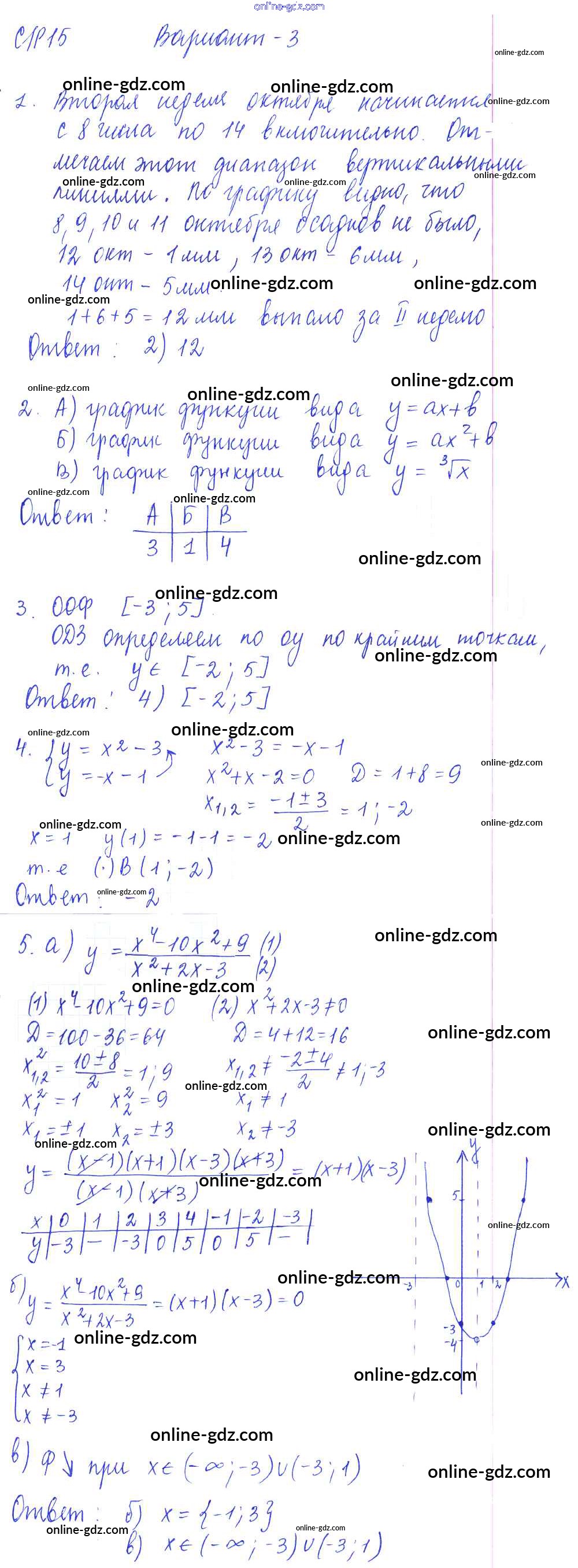 Готовые домашние задания по Алгебре за 9 класс Самостоятельные и контрольные работы Глазков, Варшавский УМК 2013 - СР-15. Итоговое повторение. Функции и графики. Графическое решение уравнений и их систем Самостоятельные работы вариант 3