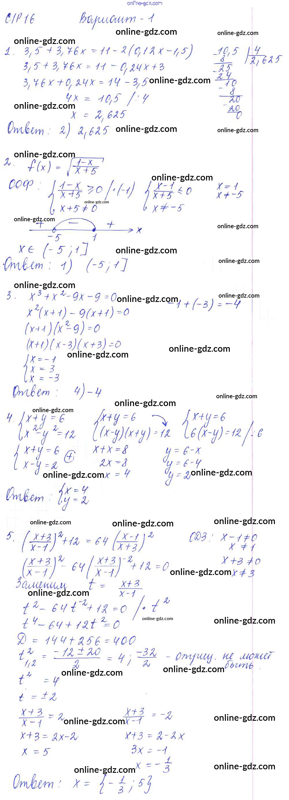 СР-16. Итоговое повторение. Решение уравнений, неравенств и их систем