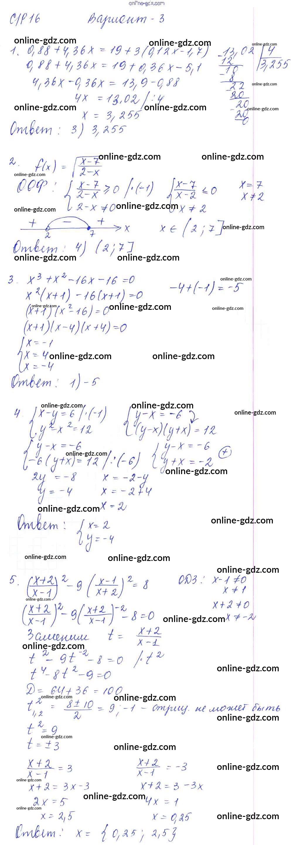 СР-16. Итоговое повторение. Решение уравнений, неравенств и их систем