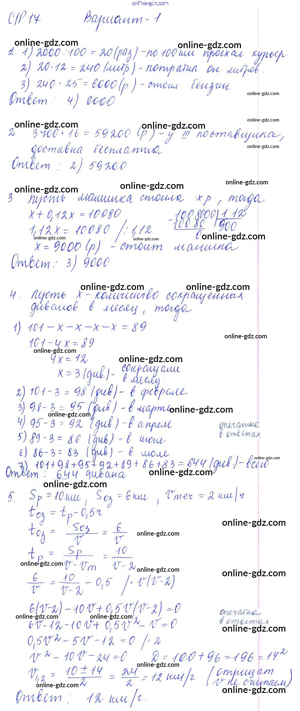 Готовые домашние задания по Алгебре за 9 класс Самостоятельные и контрольные работы Глазков, Варшавский УМК 2013 - СР-17. Итоговое повторение. Решение текстовых задач Самостоятельные работы вариант 1