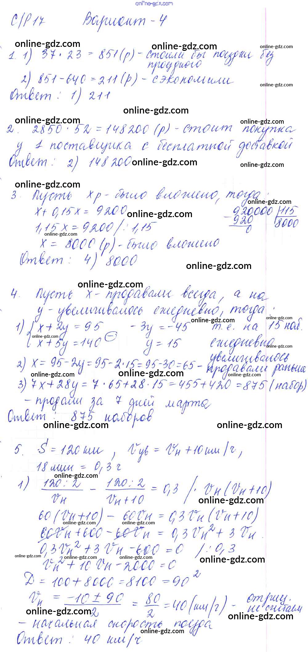 Готовые домашние задания по Алгебре за 9 класс Самостоятельные и контрольные работы Глазков, Варшавский УМК 2013 - СР-17. Итоговое повторение. Решение текстовых задач Самостоятельные работы вариант 4