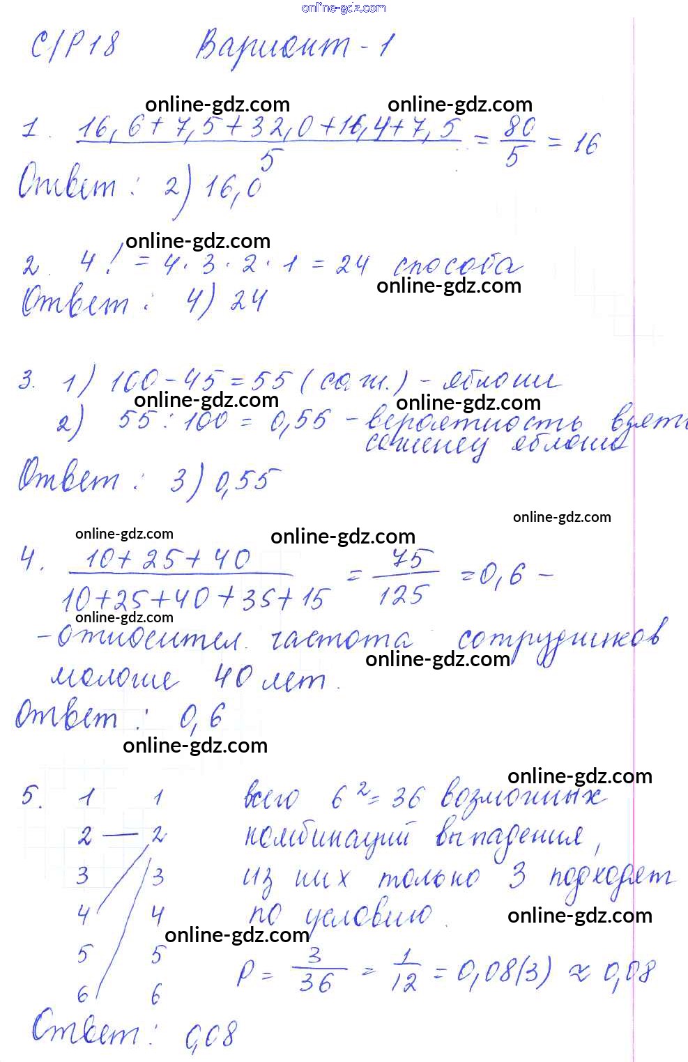 Готовые домашние задания по Алгебре за 9 класс Самостоятельные и контрольные работы Глазков, Варшавский УМК 2013 - СР-18. Итоговое повторение. Элементы статистики и теории вероятностей Самостоятельные работы вариант 1