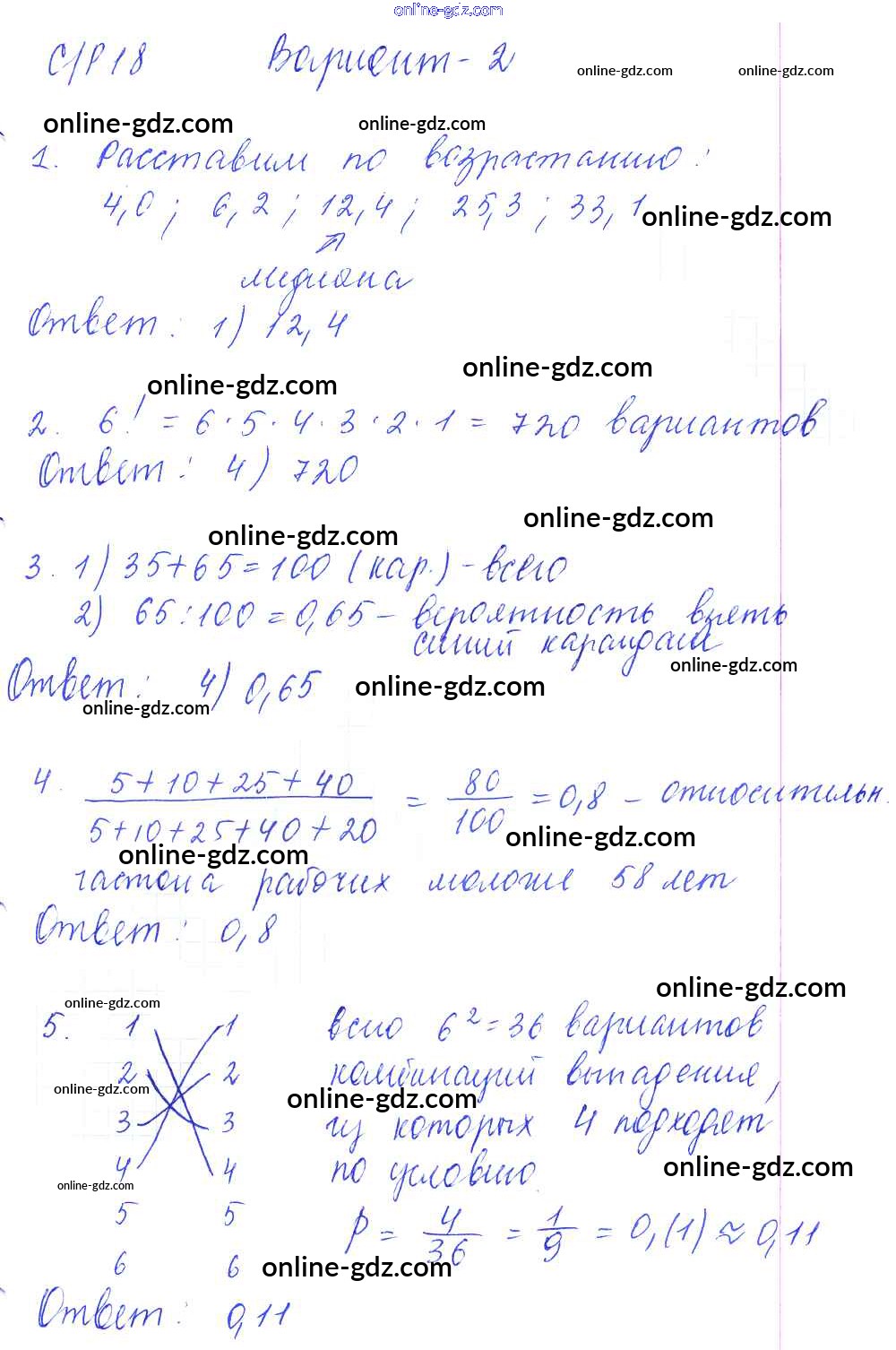 Готовые домашние задания по Алгебре за 9 класс Самостоятельные и контрольные работы Глазков, Варшавский УМК 2013 - СР-18. Итоговое повторение. Элементы статистики и теории вероятностей Самостоятельные работы вариант 2