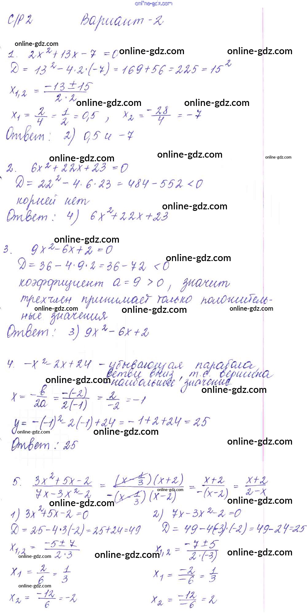 Готовые домашние задания по Алгебре за 9 класс Самостоятельные и контрольные работы Глазков, Варшавский УМК 2013 - СР-2. Квадратный трехчлен Самостоятельные работы вариант 2