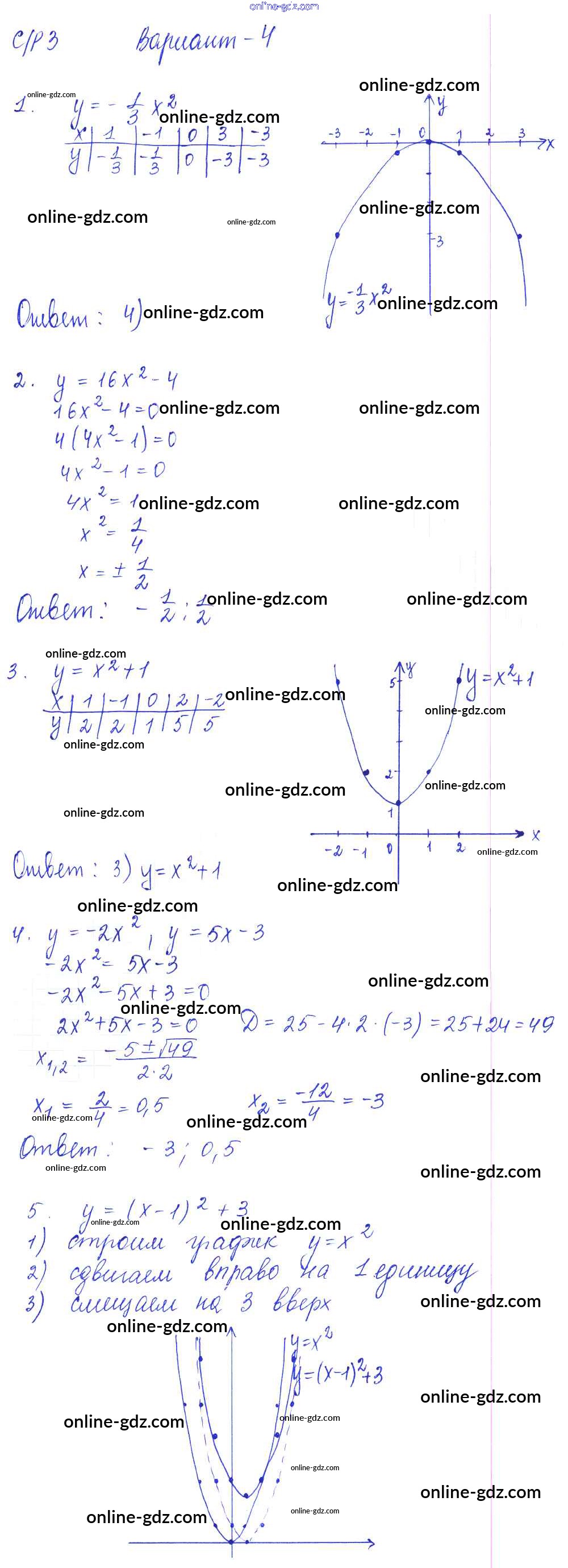 Готовые домашние задания по Алгебре за 9 класс Самостоятельные и контрольные работы Глазков, Варшавский УМК 2013 - СР-3. Квадратичная функция и её график Самостоятельные работы вариант 4