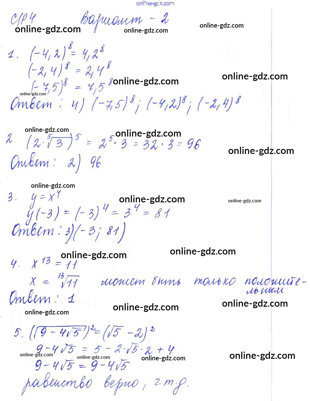 Готовые домашние задания по Алгебре за 9 класс Самостоятельные и контрольные работы Глазков, Варшавский УМК 2013 - СР-4. Степенная функция. Корень n-й степени Самостоятельные работы вариант 2