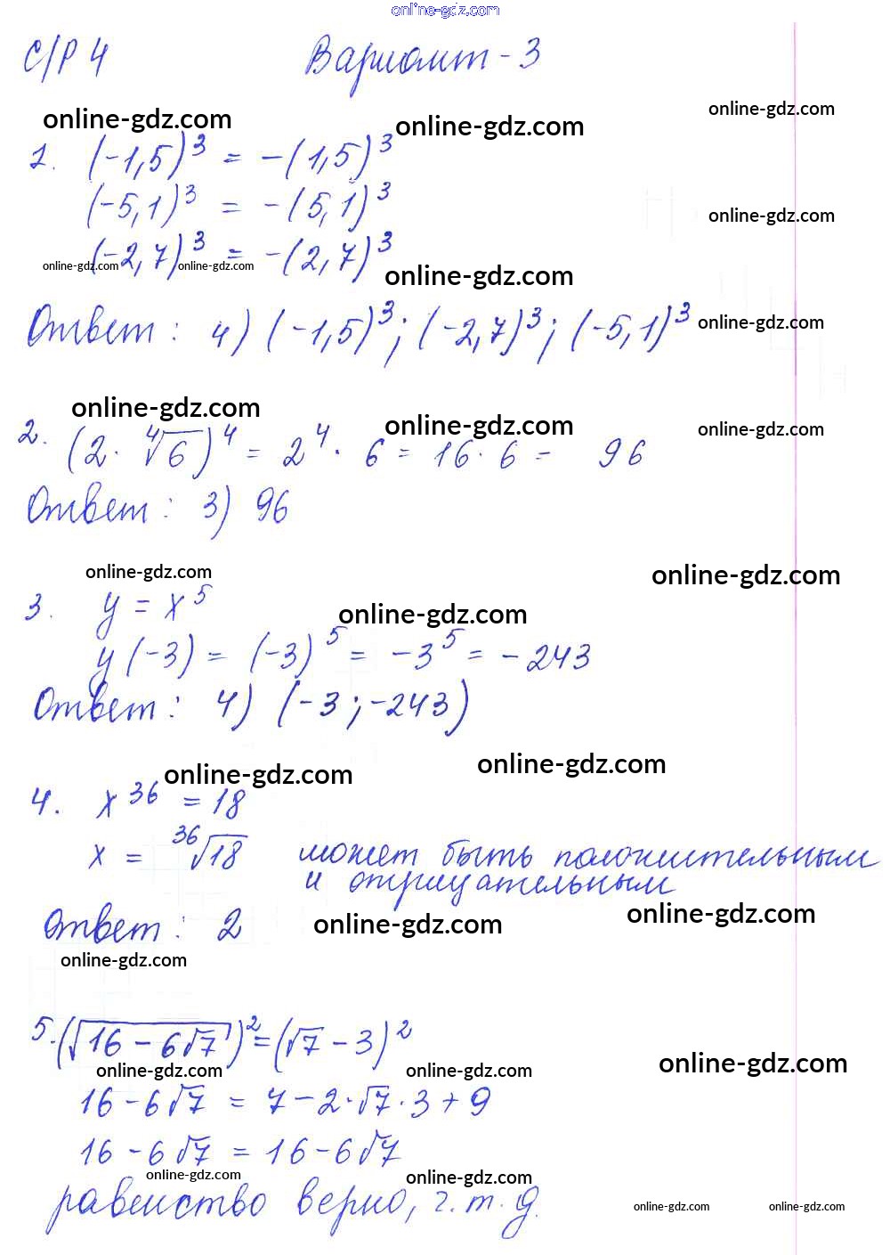 Готовые домашние задания по Алгебре за 9 класс Самостоятельные и контрольные работы Глазков, Варшавский УМК 2013 - СР-4. Степенная функция. Корень n-й степени Самостоятельные работы вариант 3
