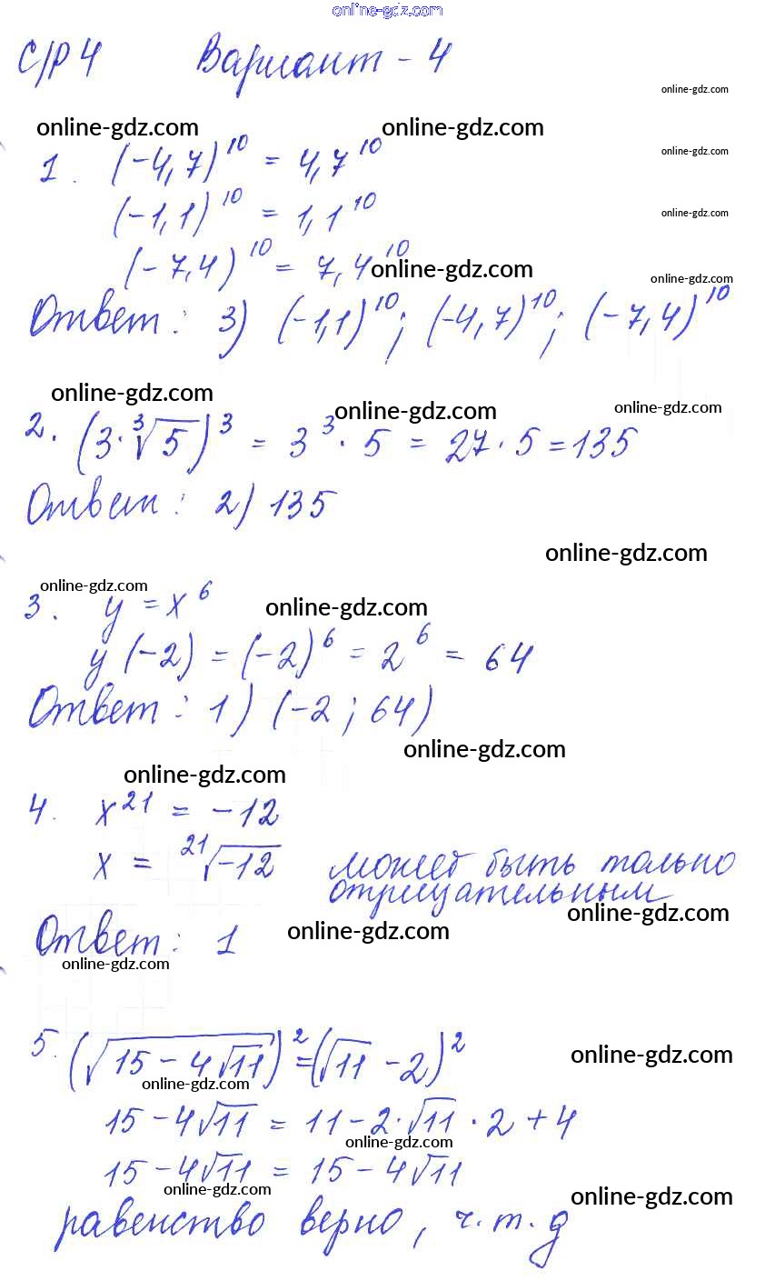 Готовые домашние задания по Алгебре за 9 класс Самостоятельные и контрольные работы Глазков, Варшавский УМК 2013 - СР-4. Степенная функция. Корень n-й степени Самостоятельные работы вариант 4