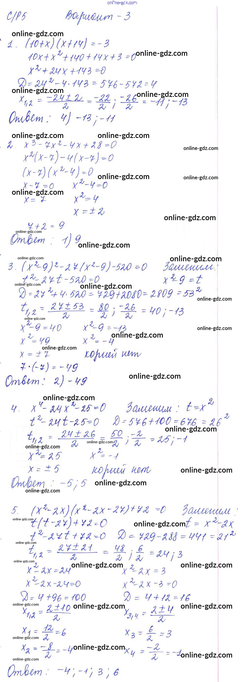 Готовые домашние задания по Алгебре за 9 класс Самостоятельные и контрольные работы Глазков, Варшавский УМК 2013 - СР-5. Уравнения с одной переменной Самостоятельные работы вариант 3