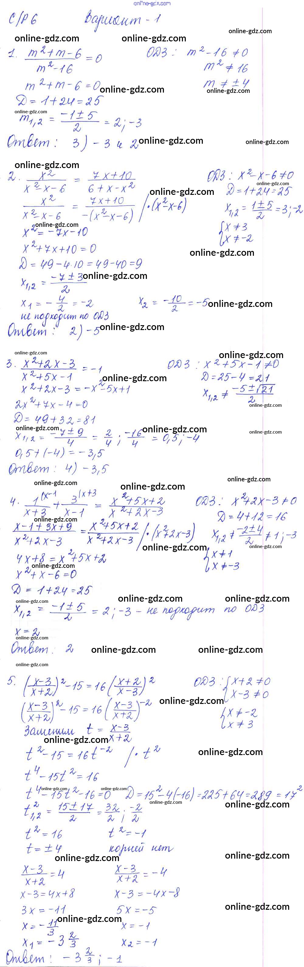 Готовые домашние задания по Алгебре за 9 класс Самостоятельные и контрольные работы Глазков, Варшавский УМК 2013 - СР-6. Дробные рациональные уравнения Самостоятельные работы вариант 1