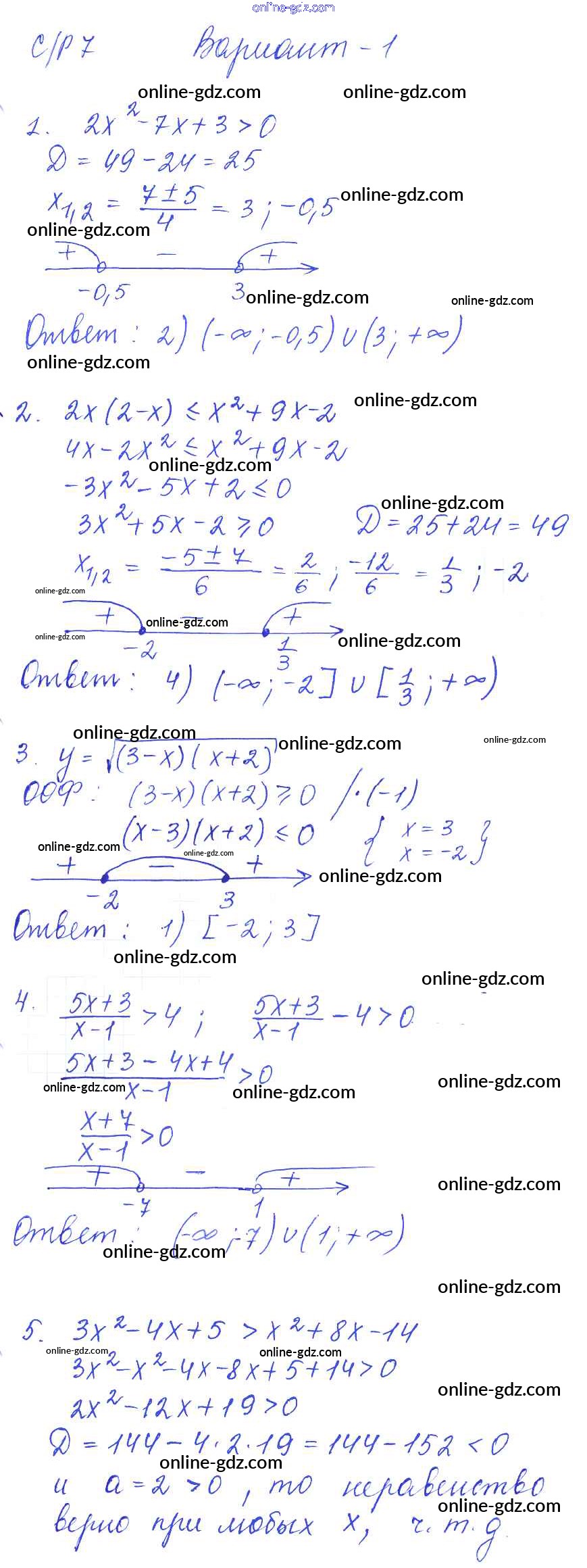 Готовые домашние задания по Алгебре за 9 класс Самостоятельные и контрольные работы Глазков, Варшавский УМК 2013 - СР-7. Неравенства с одной переменной Самостоятельные работы вариант 1