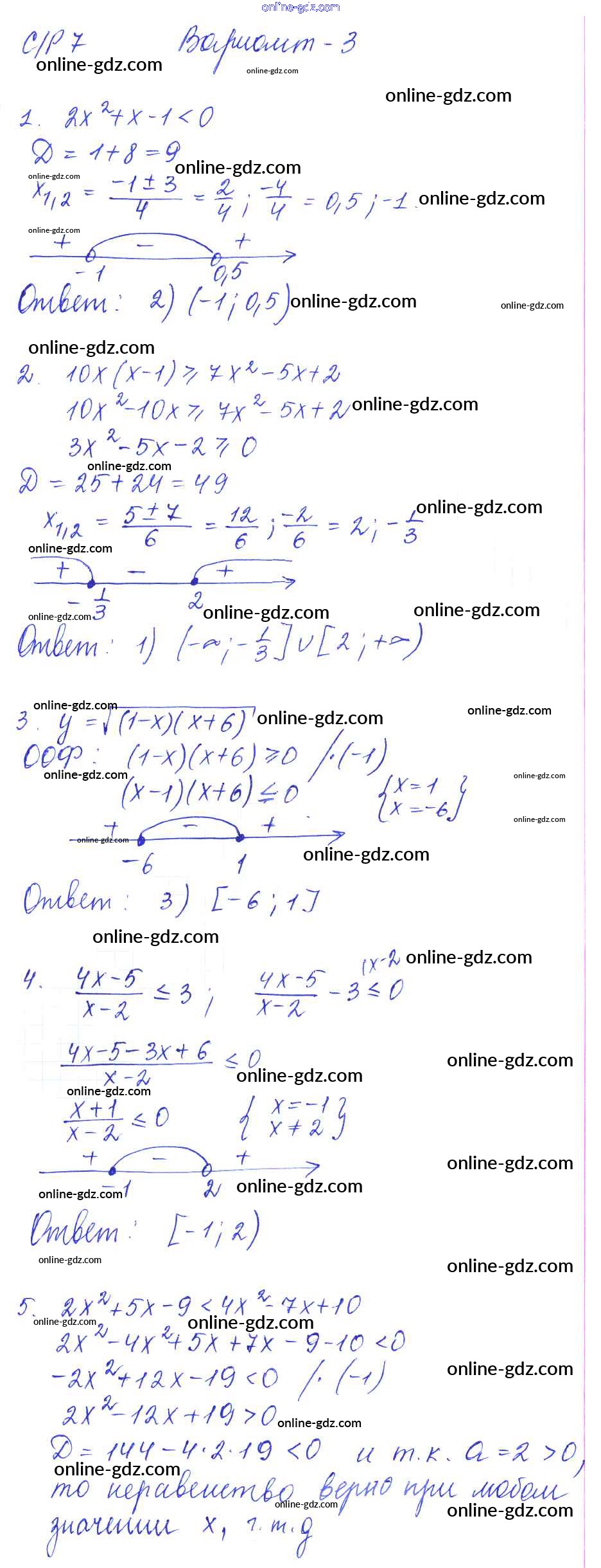 Готовые домашние задания по Алгебре за 9 класс Самостоятельные и контрольные работы Глазков, Варшавский УМК 2013 - СР-7. Неравенства с одной переменной Самостоятельные работы вариант 3
