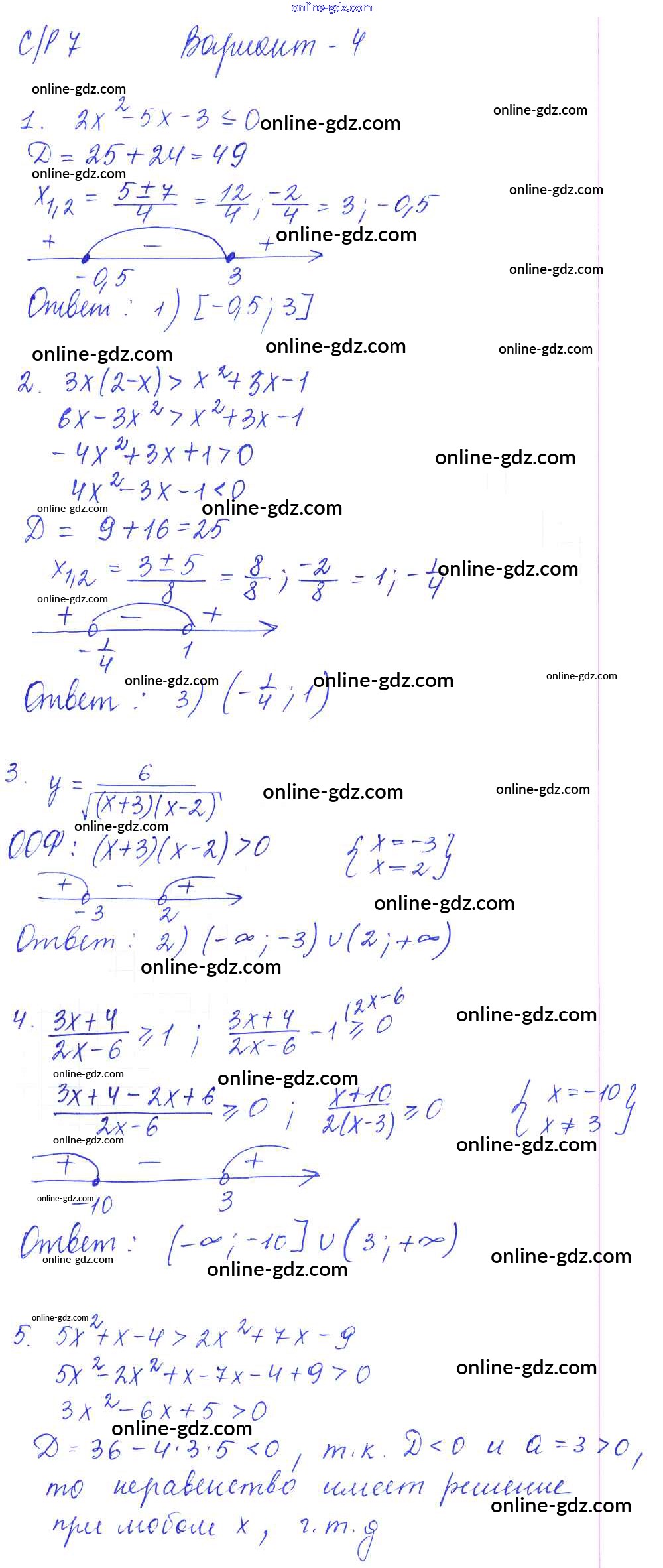 Готовые домашние задания по Алгебре за 9 класс Самостоятельные и контрольные работы Глазков, Варшавский УМК 2013 - СР-7. Неравенства с одной переменной Самостоятельные работы вариант 4