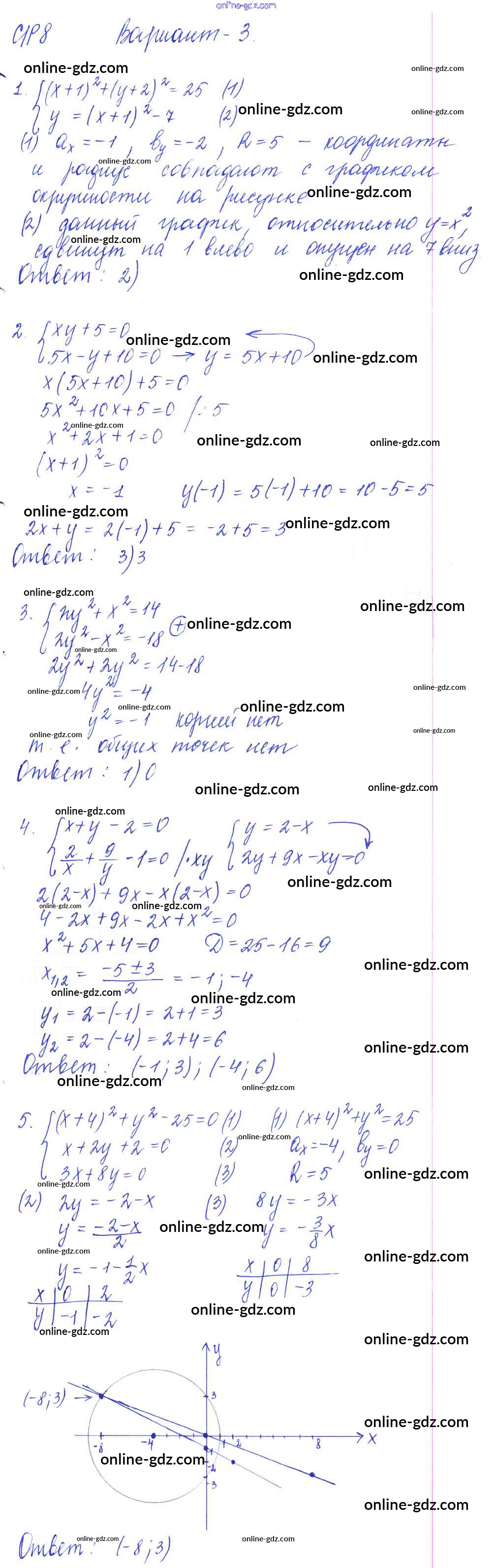 Готовые домашние задания по Алгебре за 9 класс Самостоятельные и контрольные работы Глазков, Варшавский УМК 2013 - СР-8. Уравнения с двумя переменными и их системы Самостоятельные работы вариант 3