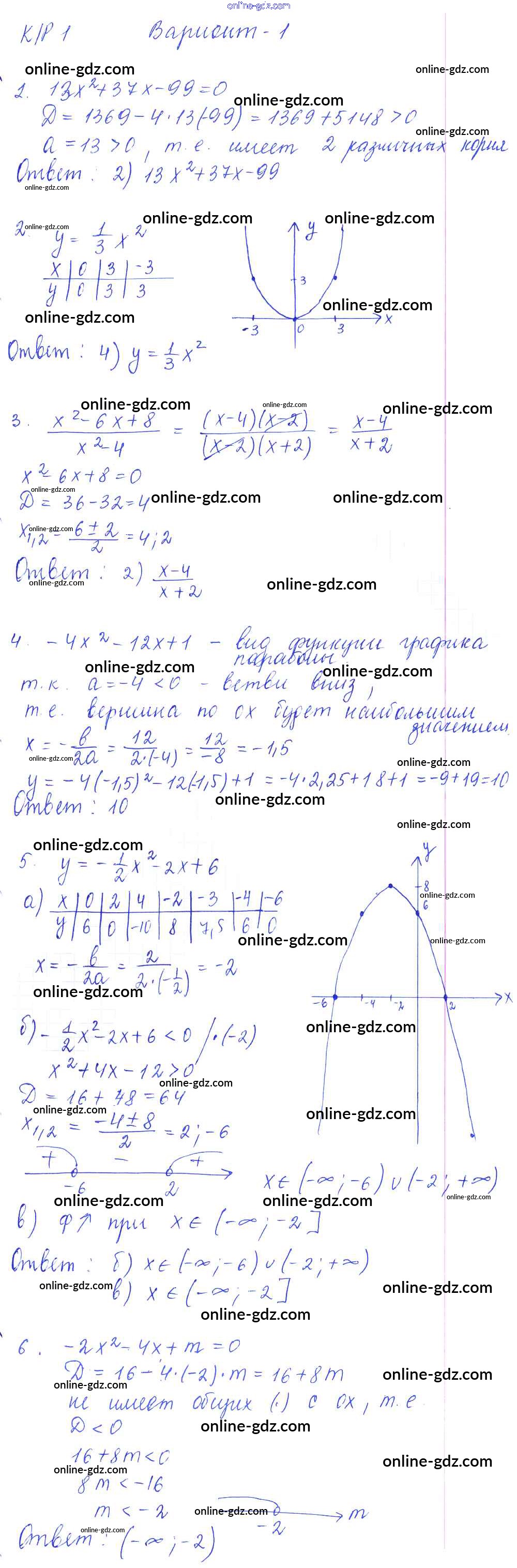Готовые домашние задания по Алгебре за 9 класс Самостоятельные и контрольные работы Глазков, Варшавский УМК 2013 - КР-1. Функции и их свойства. Квадратный трехчлен. Квадратичная функция и её график Контрольные работы вариант 1