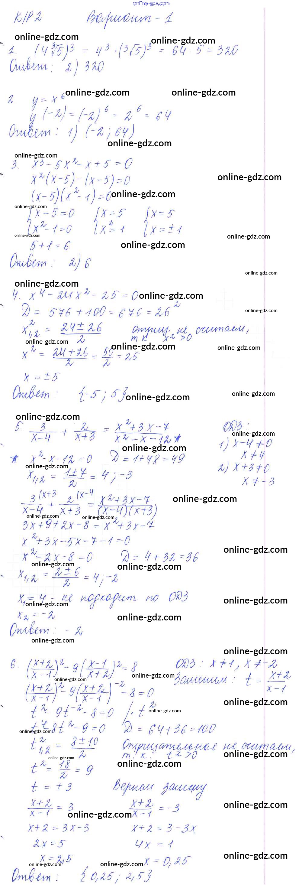 КР-2. Степенная функция. Корень n-й степени. Уравнения с одной переменной