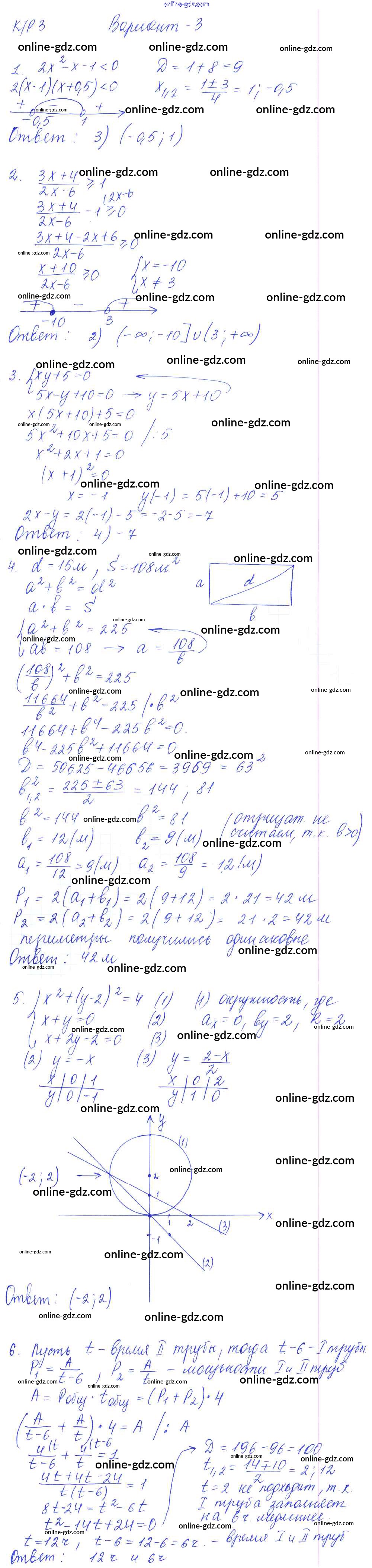 Готовые домашние задания по Алгебре за 9 класс Самостоятельные и контрольные работы Глазков, Варшавский УМК 2013 - КР-3. Неравенства с одной переменной. Уравнения с двумя переменными и их системы Контрольные работы вариант 3