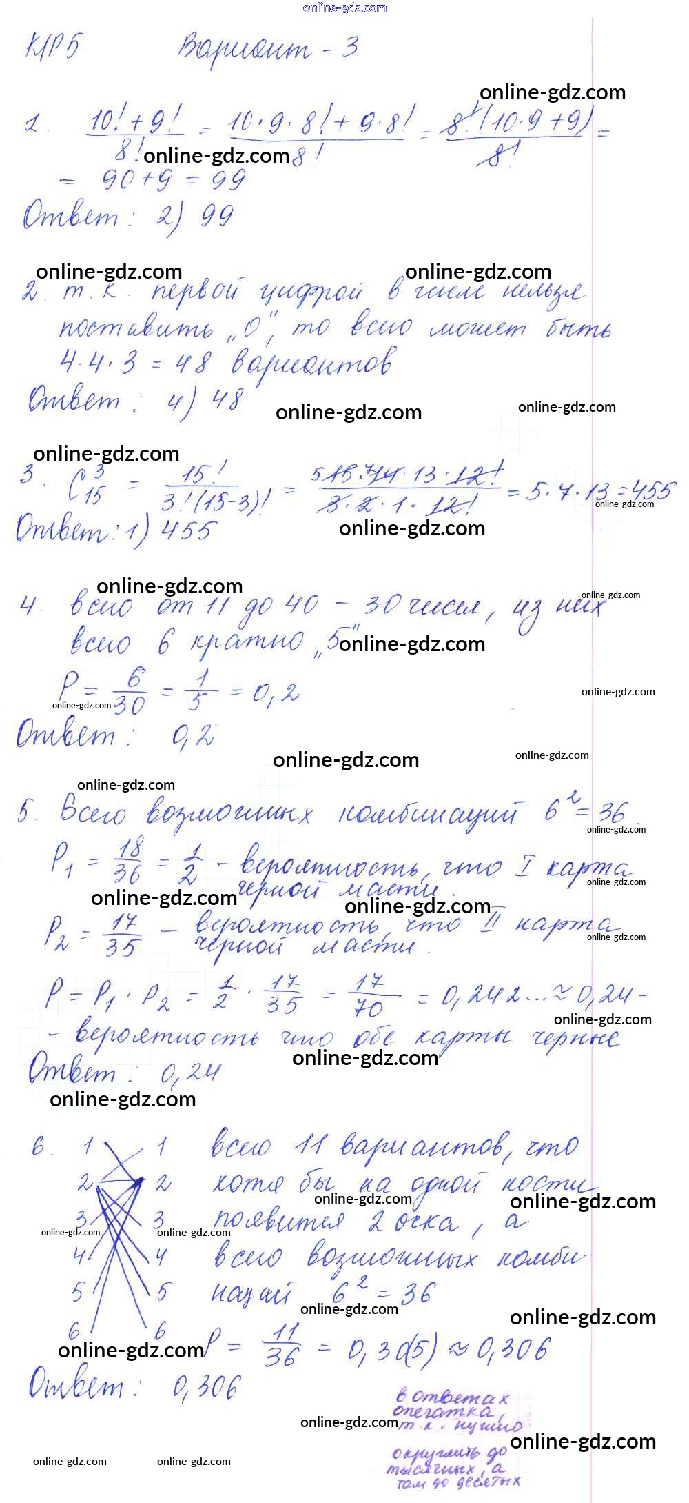 Готовые домашние задания по Алгебре за 9 класс Самостоятельные и контрольные работы Глазков, Варшавский УМК 2013 - КР-5. Элементы комбинаторики и теории вероятностей Контрольные работы вариант 3