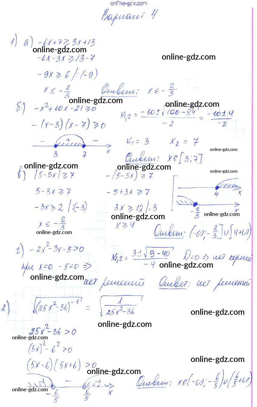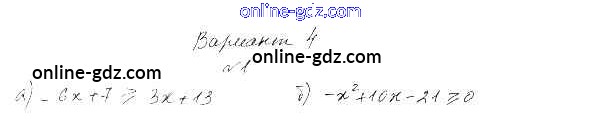 Готовые домашние задания по Алгебре за 9 класс Самостоятельные работы Александрова УМК Базовый уровень 2016 - СР-1. Линейные и квадратные неравенства Тема 1. Неравенства и системы неравенств вариант 4