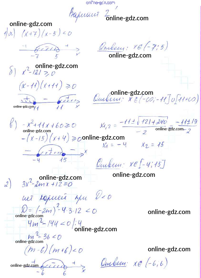 Готовые домашние задания по Алгебре за 9 класс Самостоятельные работы Александрова УМК Базовый уровень 2016 - СР-2. Рациональные неравенства Тема 1. Неравенства и системы неравенств вариант 2