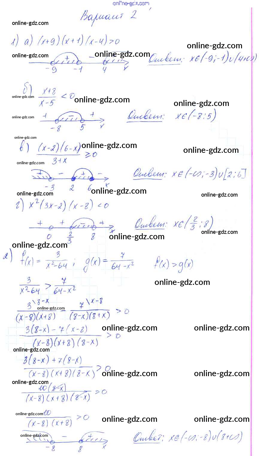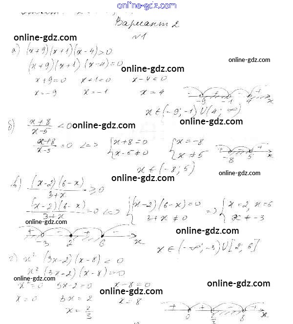 Готовые домашние задания по Алгебре за 9 класс Самостоятельные работы Александрова УМК Базовый уровень 2016 - СР-3. Рациональные неравенства Тема 1. Неравенства и системы неравенств вариант 2