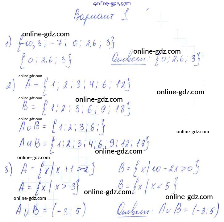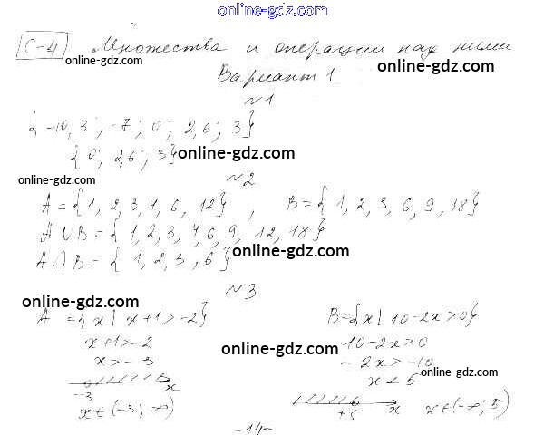Готовые домашние задания по Алгебре за 9 класс Самостоятельные работы Александрова УМК Базовый уровень 2016 - СР-4. Множества и операции над ними Тема 1. Неравенства и системы неравенств вариант 1