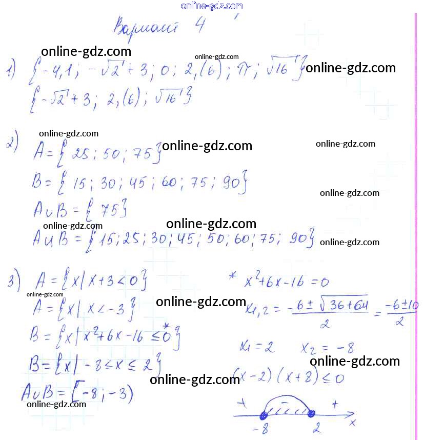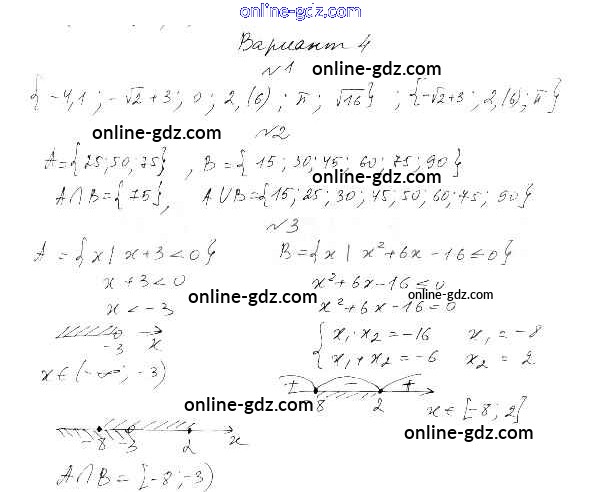 Готовые домашние задания по Алгебре за 9 класс Самостоятельные работы Александрова УМК Базовый уровень 2016 - СР-4. Множества и операции над ними Тема 1. Неравенства и системы неравенств вариант 4