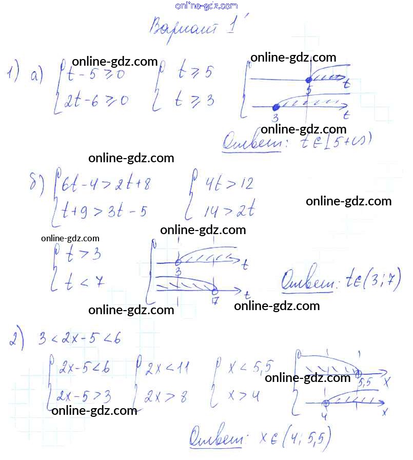 Готовые домашние задания по Алгебре за 9 класс Самостоятельные работы Александрова УМК Базовый уровень 2016 - СР-5. Системы рациональных неравенств Тема 1. Неравенства и системы неравенств вариант 1