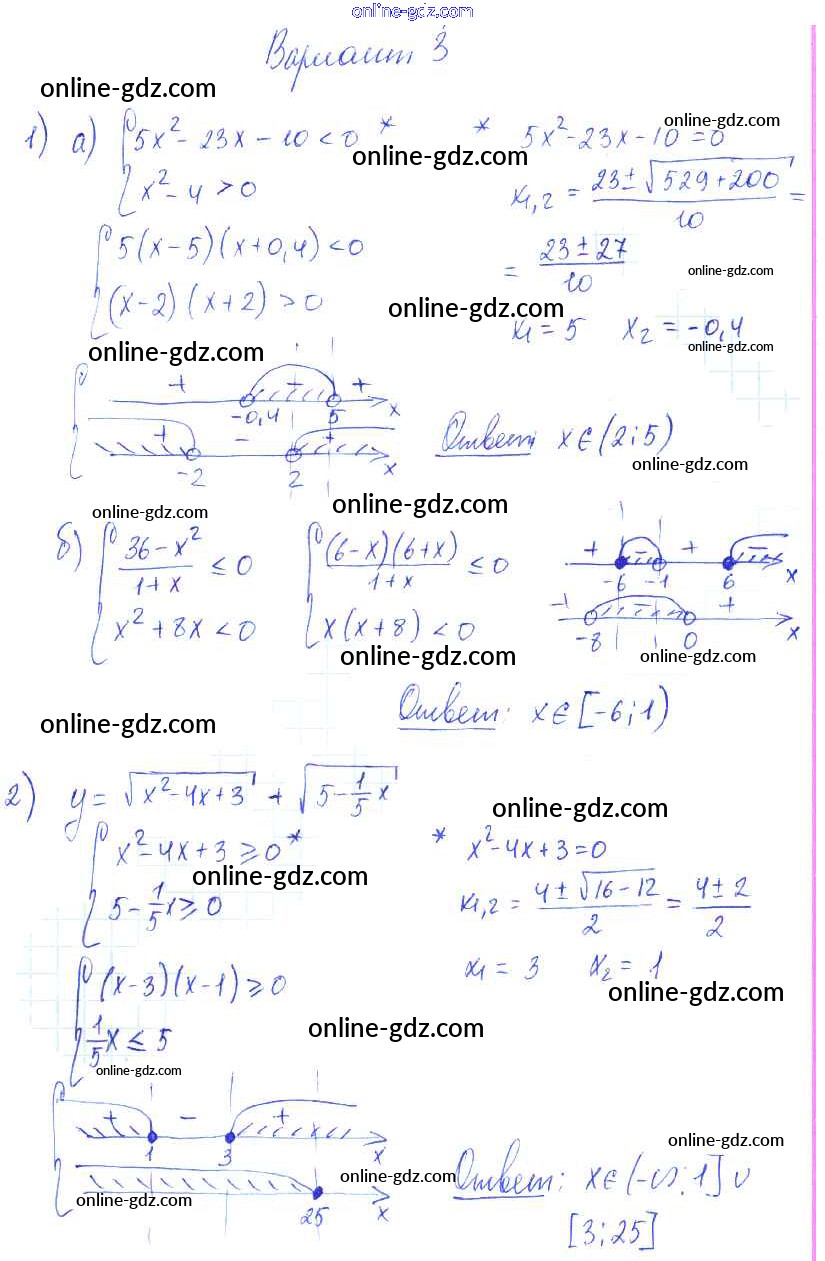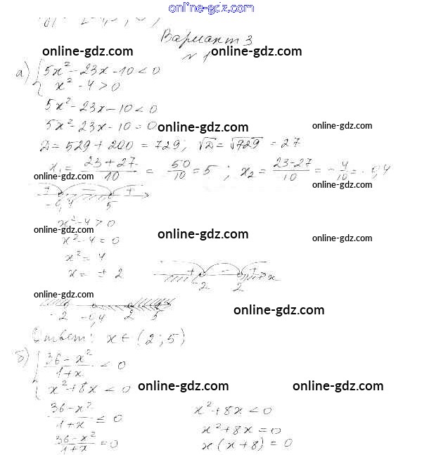 Готовые домашние задания по Алгебре за 9 класс Самостоятельные работы Александрова УМК Базовый уровень 2016 - СР-6. Системы рациональных неравенств Тема 1. Неравенства и системы неравенств вариант 3