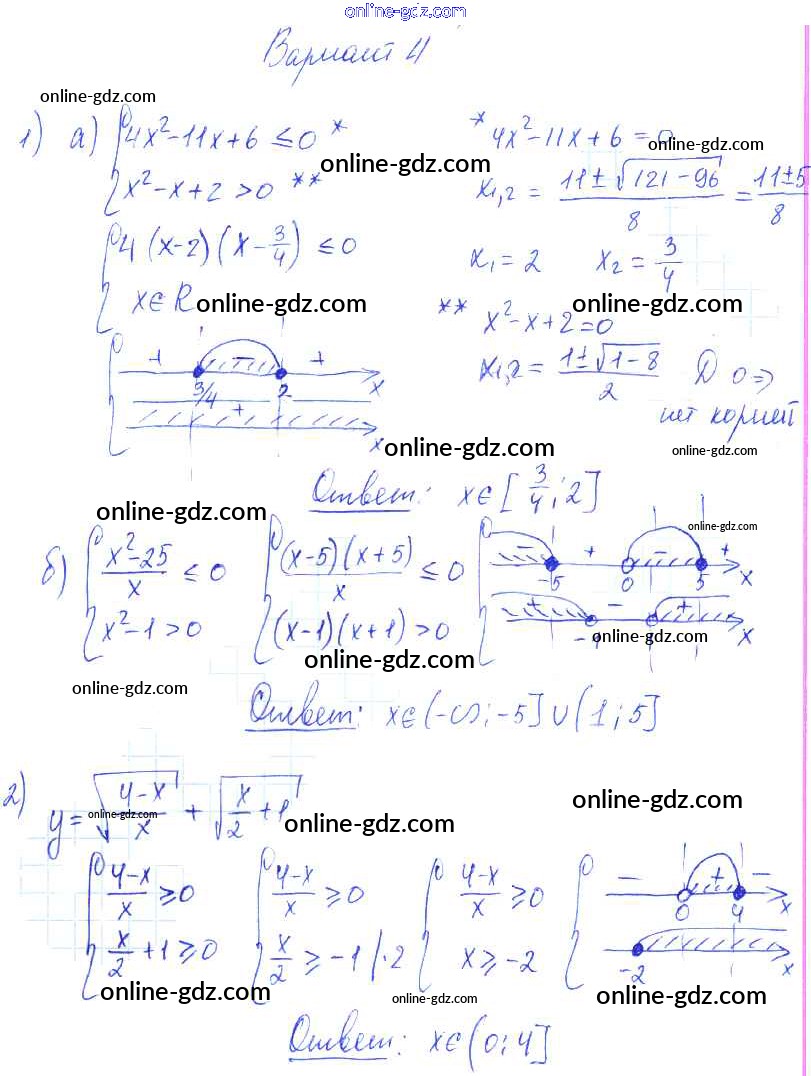 Готовые домашние задания по Алгебре за 9 класс Самостоятельные работы Александрова УМК Базовый уровень 2016 - СР-6. Системы рациональных неравенств Тема 1. Неравенства и системы неравенств вариант 4