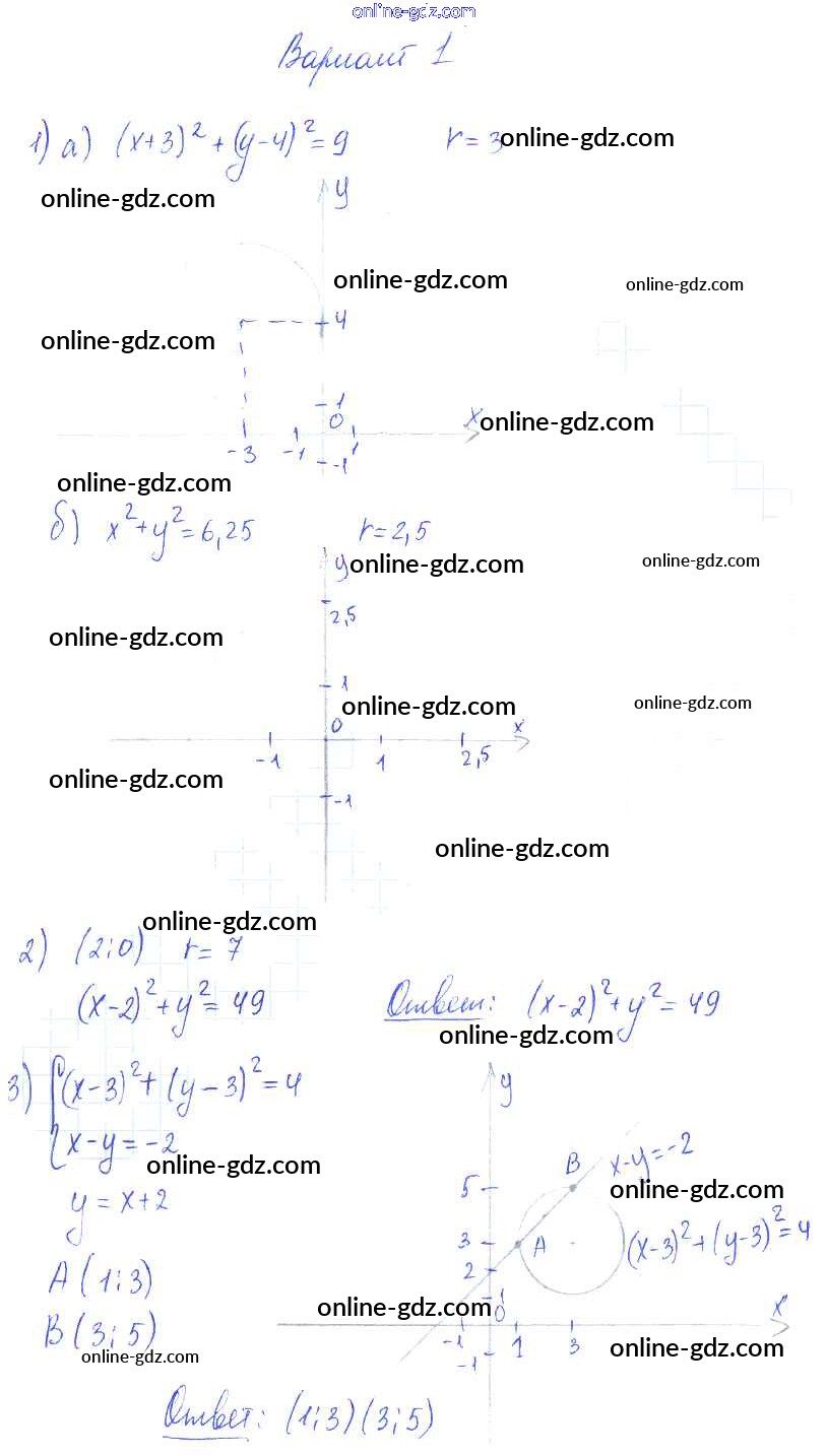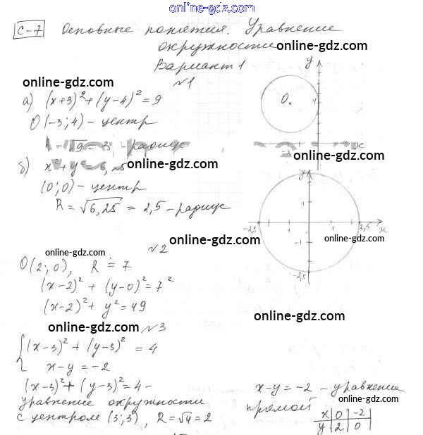 Готовые домашние задания по Алгебре за 9 класс Самостоятельные работы Александрова УМК Базовый уровень 2016 - СР-7. Основные понятия Тема 2. Системы уравнений вариант 1