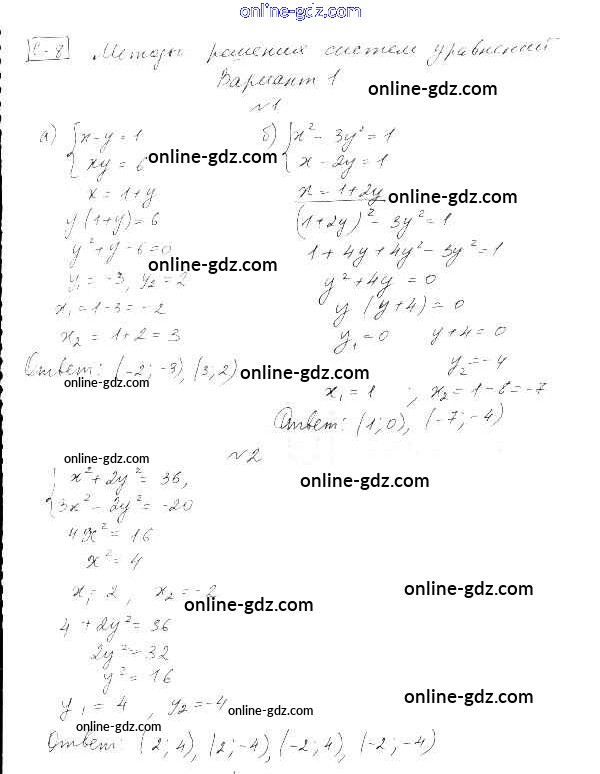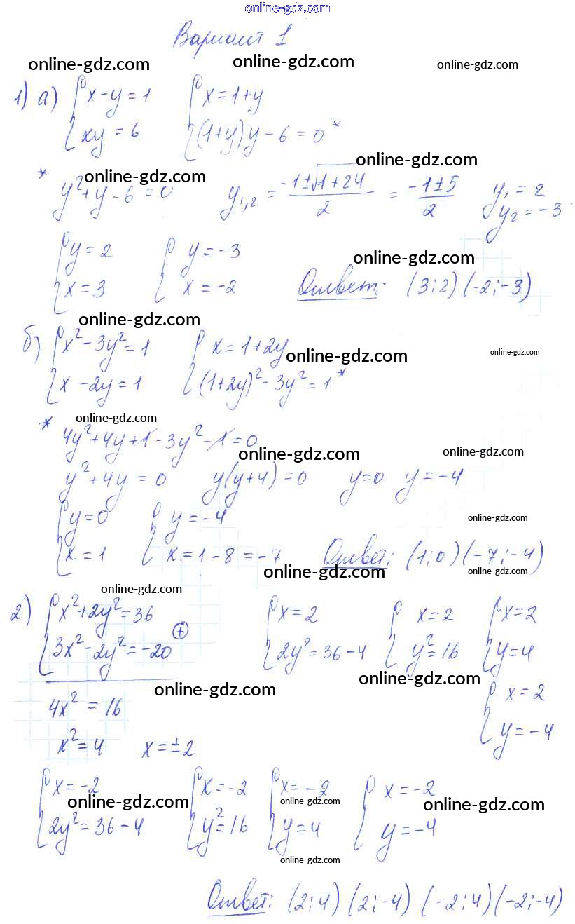 Готовые домашние задания по Алгебре за 9 класс Самостоятельные работы Александрова УМК Базовый уровень 2016 - СР-8. Методы решения систем уравнений Тема 2. Системы уравнений вариант 1