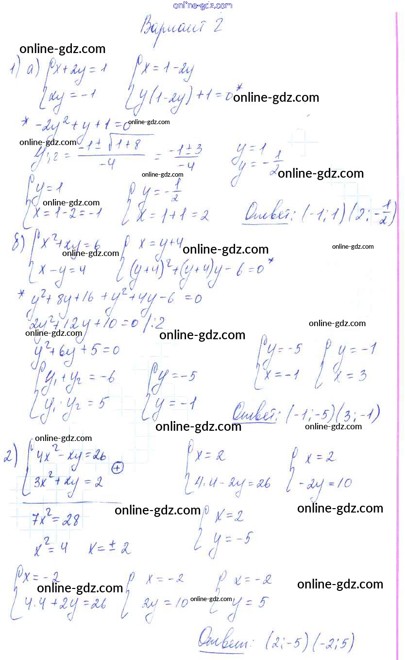 Готовые домашние задания по Алгебре за 9 класс Самостоятельные работы Александрова УМК Базовый уровень 2016 - СР-8. Методы решения систем уравнений Тема 2. Системы уравнений вариант 2