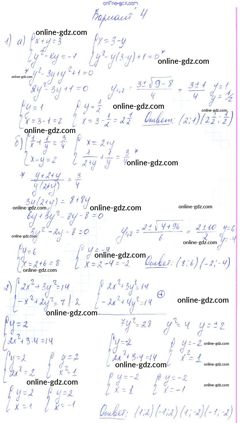 Готовые домашние задания по Алгебре за 9 класс Самостоятельные работы Александрова УМК Базовый уровень 2016 - СР-8. Методы решения систем уравнений Тема 2. Системы уравнений вариант 4