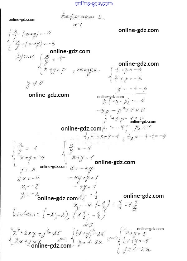 Готовые домашние задания по Алгебре за 9 класс Самостоятельные работы Александрова УМК Базовый уровень 2016 - СР-9. Методы решения систем уравнений Тема 2. Системы уравнений вариант 3