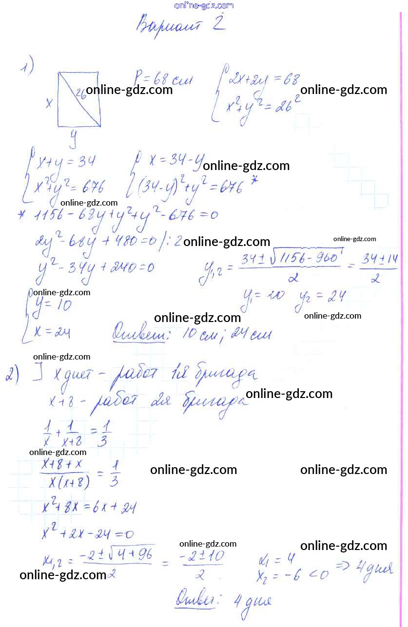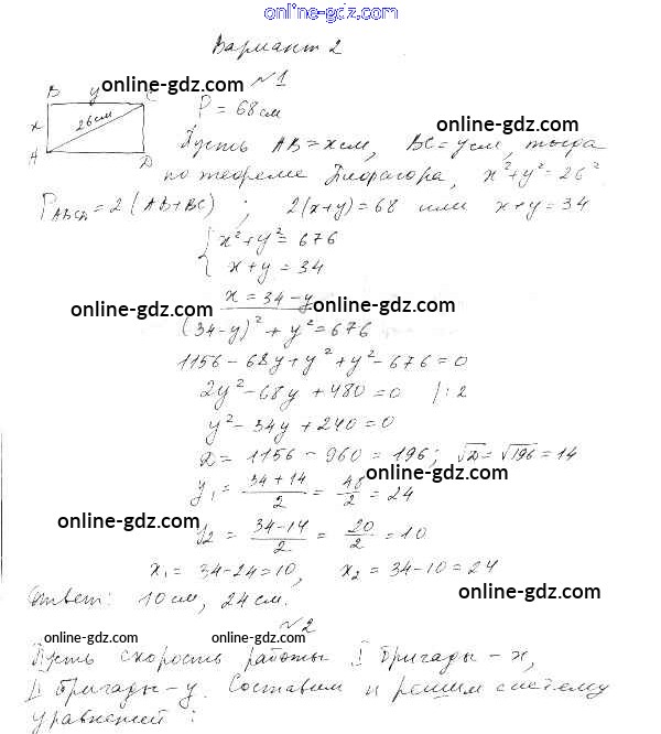 Готовые домашние задания по Алгебре за 9 класс Самостоятельные работы Александрова УМК Базовый уровень 2016 - СР-10. Системы уравнений как математические модели реальных ситуаций Тема 2. Системы уравнений вариант 2